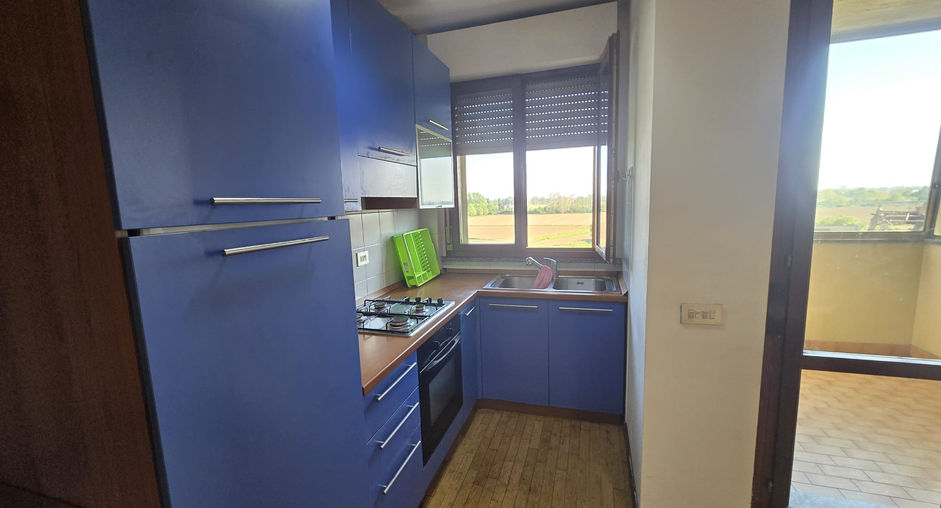 L'appartamento si compone di ingresso nella zona giorno con angolo cottura e uscita sul terrazzino. L'ampio spazio permette di posizionare il divano letto e rendere l'ambiente zona notte.