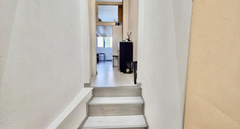 L’immobile si trova al piano terra di un elegante palazzo della fine degli anni '70 dotato di servizio di portineria per l’intera giornata dal lunedì al venerdì e per mezza giornata il sabato.