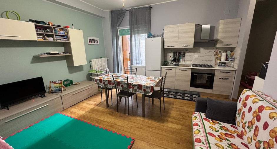 L'appartamento si compone di ingresso nella zona giorno con cucina a vista e uscita sul balcone.