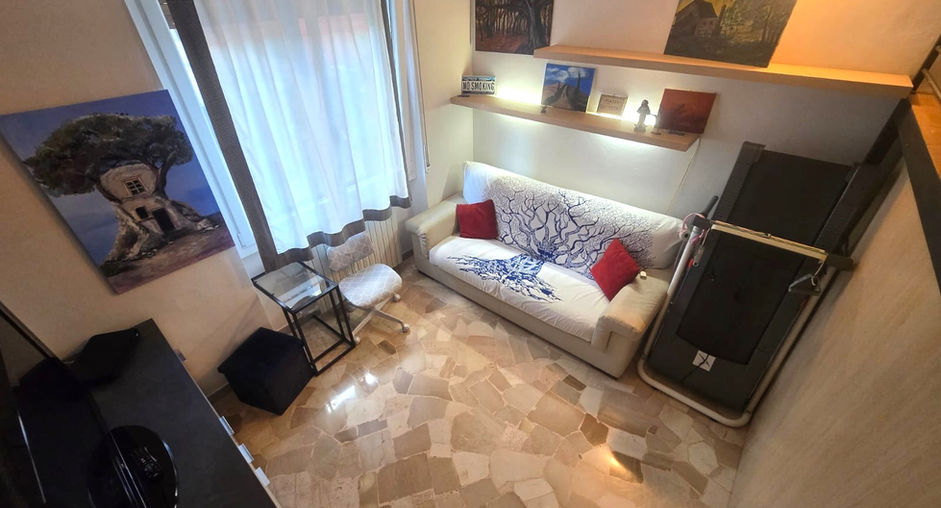 L’ingresso si apre su un comodo disimpegno che conduce alla cucina abitabile, ben separata dagli altri ambienti. proseguendo troviamo il soggiorno che svolge anche la funzione di zona notte ed è arricchito da una pratica cabina armadio, che ottimizza al meglio gli spazi.