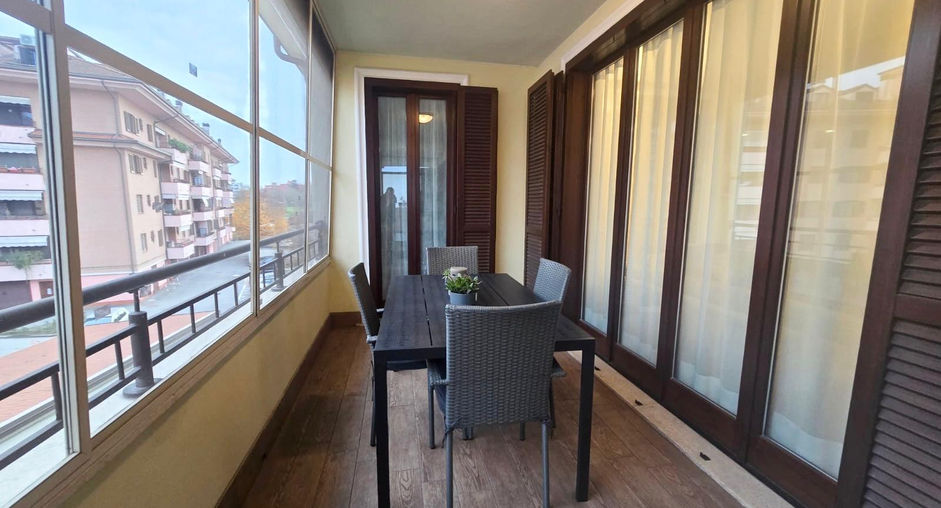 Sia il soggiorno che la cucina hanno accesso al terrazzo dotato di zanzariere, uno spazio ottimale per godersi momenti all'aria aperta.